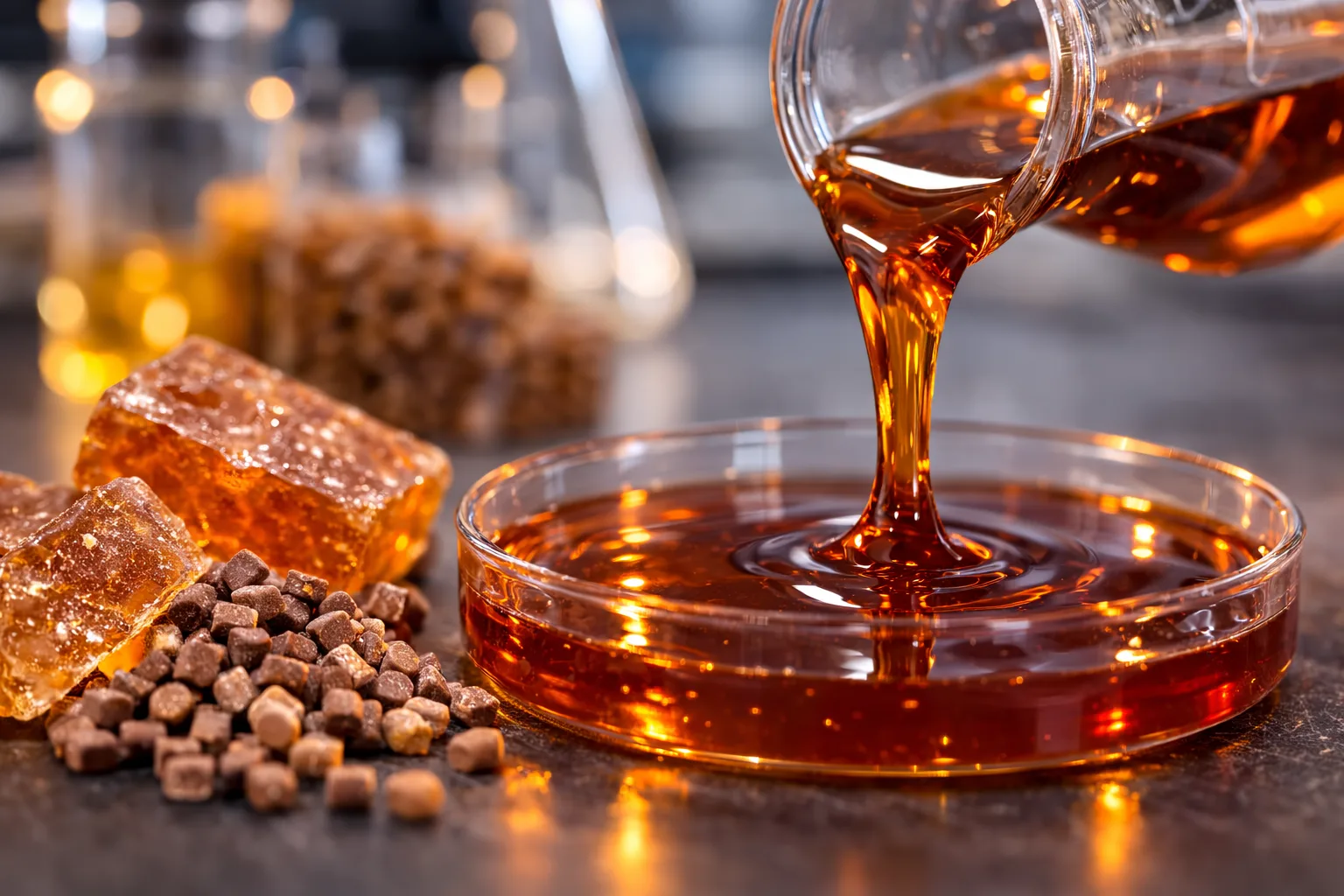 Phenol formaldehyde resins used in brake pads, grinding wheels, laminates, wood panels and industrial binding applications.